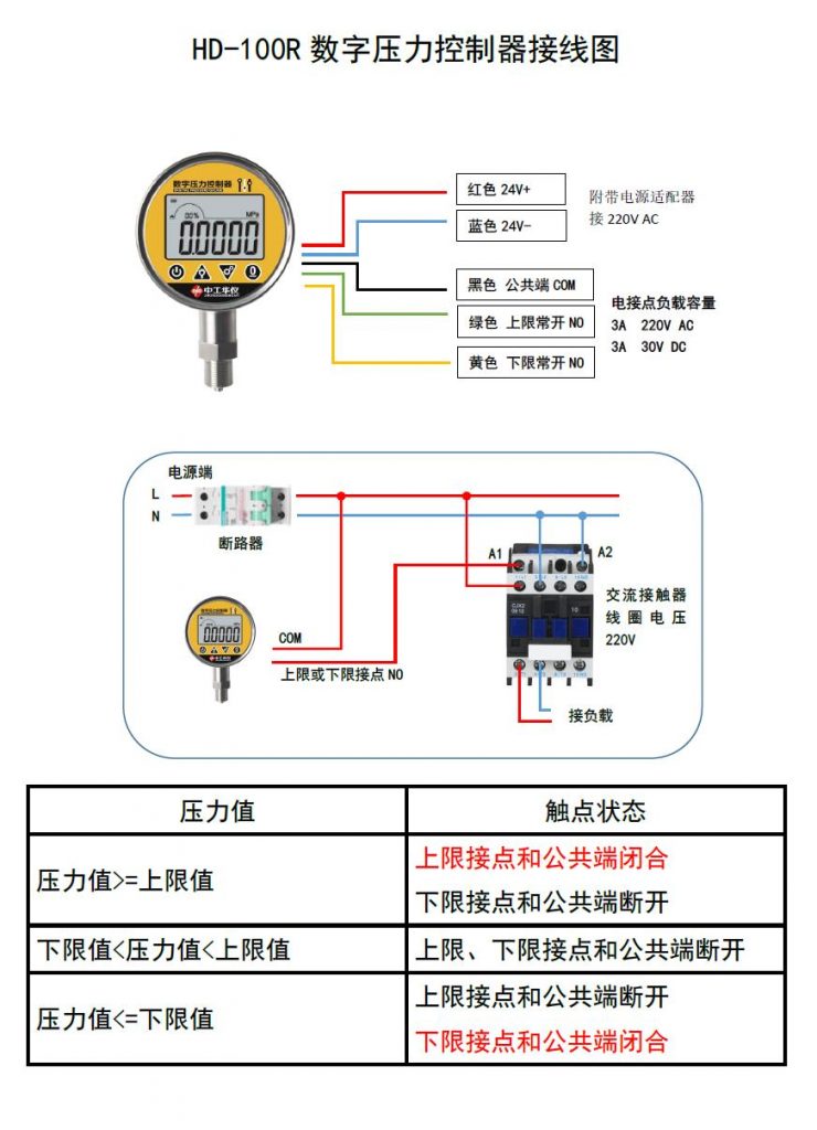 智能数字压力表已经是大家广泛使用的智能仪表。其中数字压力控制器完全可以替代传统电接点压力表,并且在控制精度和可靠性方面要优于传统电接点压力表。华仪君今天给大家介绍一下智能数字压力表/数字压力控制器的接线方法,方便大家使用。您在使用过程中有疑问也可以随时和我们联系。
